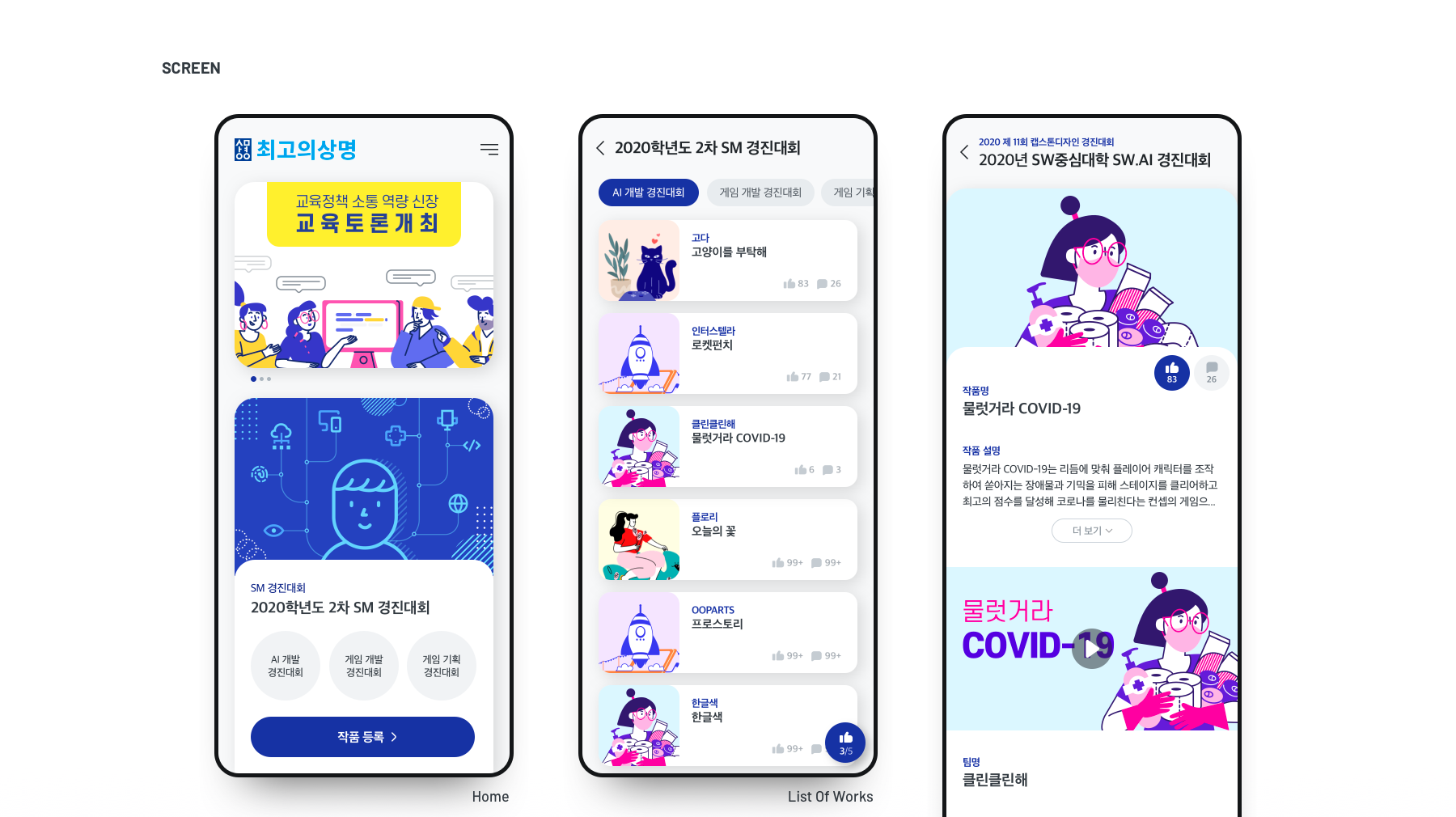 상명대학교 SW중심대학사업단에서 주관하는 대학 최초의 프로그램 운영을 위한 경진대회 플랫폼 앱
